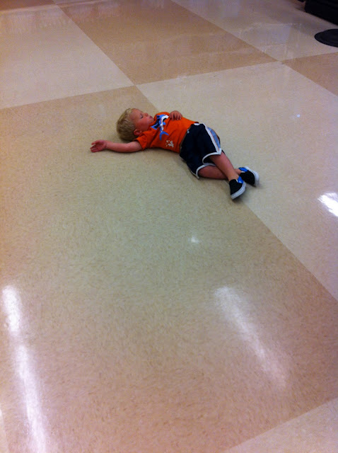 It was gross.  Have you ever looked closely at grocery store floors?  Well, neither have I.  But I can imagine they are disgusting.  But I guess that's the price you pay for throwing tantrums!